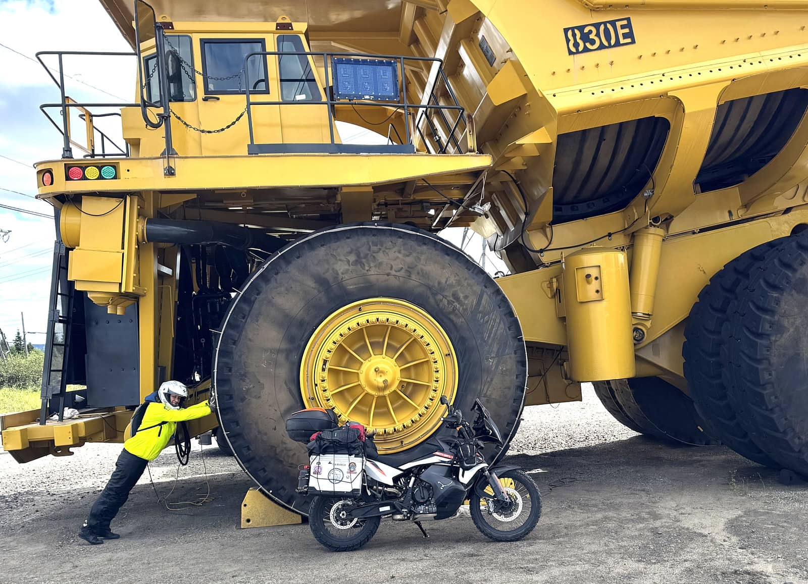 J’ai une anecdote qui illustre bien la capacité du pneu Dunlop Trailmax Mission. On débute avec un pneu gonflé à 35 psi (pression recommandée) dans mon garage à 15 °C (59 °F). Au moment de notre départ, la température à l’extérieur affichait 30 °C (86 °F). Nous étions deux passagers, en plus de notre équipement de camping et de survie pour deux semaines. Autant dire que la moto était très, très lourdement chargée.